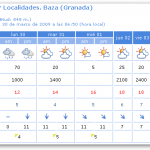 Cielos nubosos a muy nubosos con chubascos débiles a moderados, que podrían ir ocasionalmente acompañados de tormentas y ser localmente fuertes hacia las comarcas orientales. La cota de nieve estará situada en torno a los 900-1000 metros. Temperaturas nocturnas en ligero a moderado descenso; diurnas sin cambios. Vientos de componente norte en el interior, flojos a moderados; de componente oeste en el litoral moderados disminyuendo a flojos durnte la tarde.