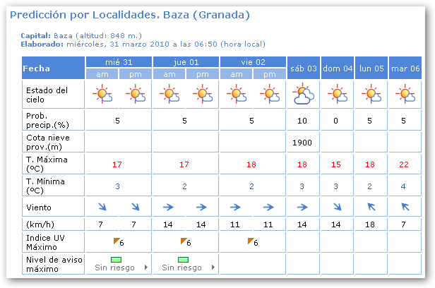Poco nuboso con intervalos de nubes altas. Temperaturas diurnas sin cambios o en ligero ascenso. Vientos de componente Oeste, flojos a moderados.