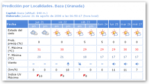 «Intervalos nubosos matinales en el litoral; cielos poco nubosos en el resto aumentando a intervalos nubosos de nubes altas a lo largo del día. Brumas costeras. Temperaturas sin cambios. Vientos variables flojos en el interior tendiendo a componente Oeste por la tarde; de componente Este flojos en el litoral.