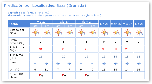 Según la Agencia Estatal de Meteorología, la previsión para la provincia de Granada hoy es la siguiente: