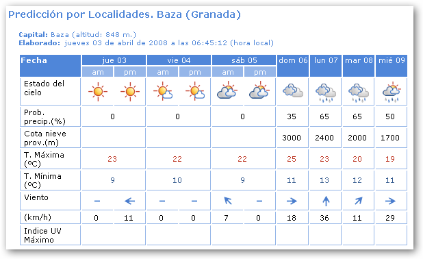 La previsión meteorológica según la Agencia Estatal de Meteorología, para la provincia de Granada es la siguiente: