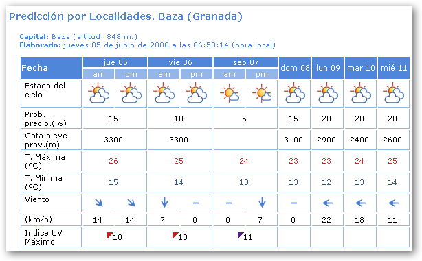 Previsión meteorológica para la provincia de Granada, según la Agencia Estatal de Meteorología: