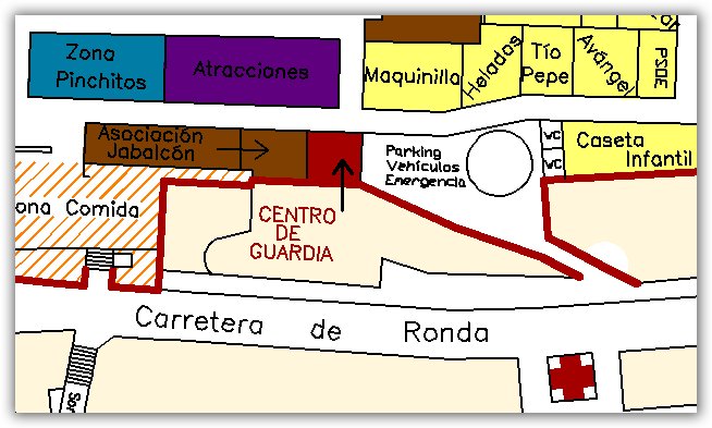 Al llegar la noche… ¡al Centro de Guardia!, donde permanecemos de 22:00 h a 02:00 horas, todos los días de la feria, junto con Policía Local y Bomberos. Continuamos colocando a los niños las «Pulseras de Identificación» y revisando las salidas de emergencia del Recinto Ferial, así como atendiendo incidentes de diversa índole en cooperación con Cruz Roja.