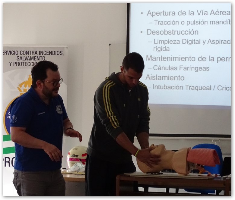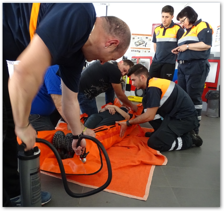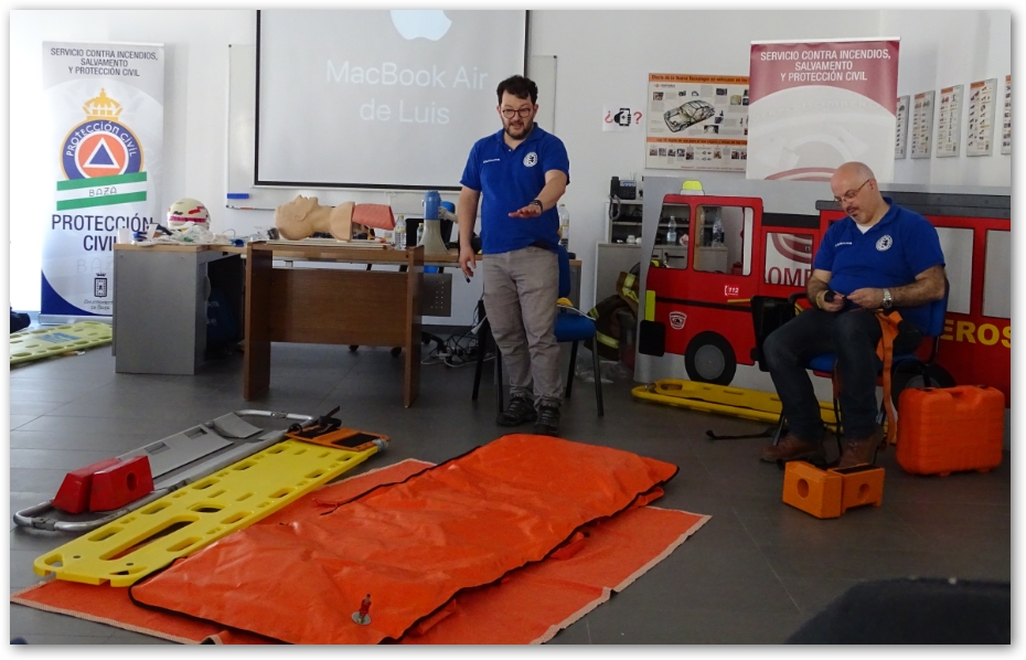 La formación fue impartida este pasado sábado por Luis Roberto Jiménez Guadarrama, médico de emergencias, instructor de Trauma Prehospitalario y director médico de E-mergencia Formación, junto con Marcos Ramírez Quevedo, técnico en Emergencias Sanitarias e instructor de Soporte Vital Básico, ambos, con una amplia experiencia profesional que a través de supuestos prácticos y utilizando el material del que dispone la Agrupación, enseñaron didácticamente la secuencia correcta en la atención a un traumatizado, la inmovilización bimanual, la inmovilización de miembros superiores e inferiores, movilización, extracción de un vehículo y transferencia a una ambulancia.