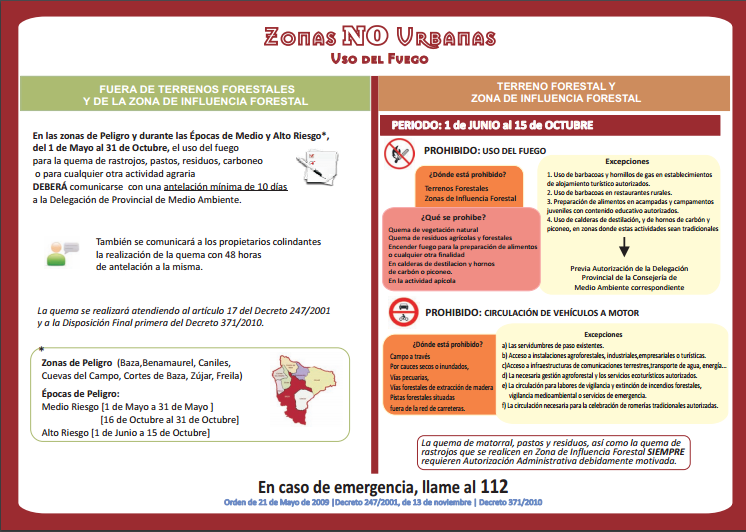 - Época de Peligro Bajo: de 1 de enero a 30 de abril y de 1 de noviembre a 31 de diciembre.