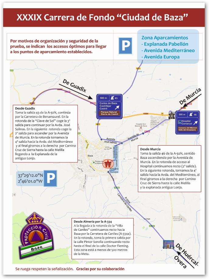 El evento deportivo de mayor envergadura que se celebra en la ciudad de Baza, exige un dispositivo que garantice la seguridad de los participantes, así como el acceso a vehículos de emergencia, por ello, el próximo domingo 15 de marzo varias vías públicas estarán reservadas para la celebración de este Carrera de Fondo que cumple 39 años.