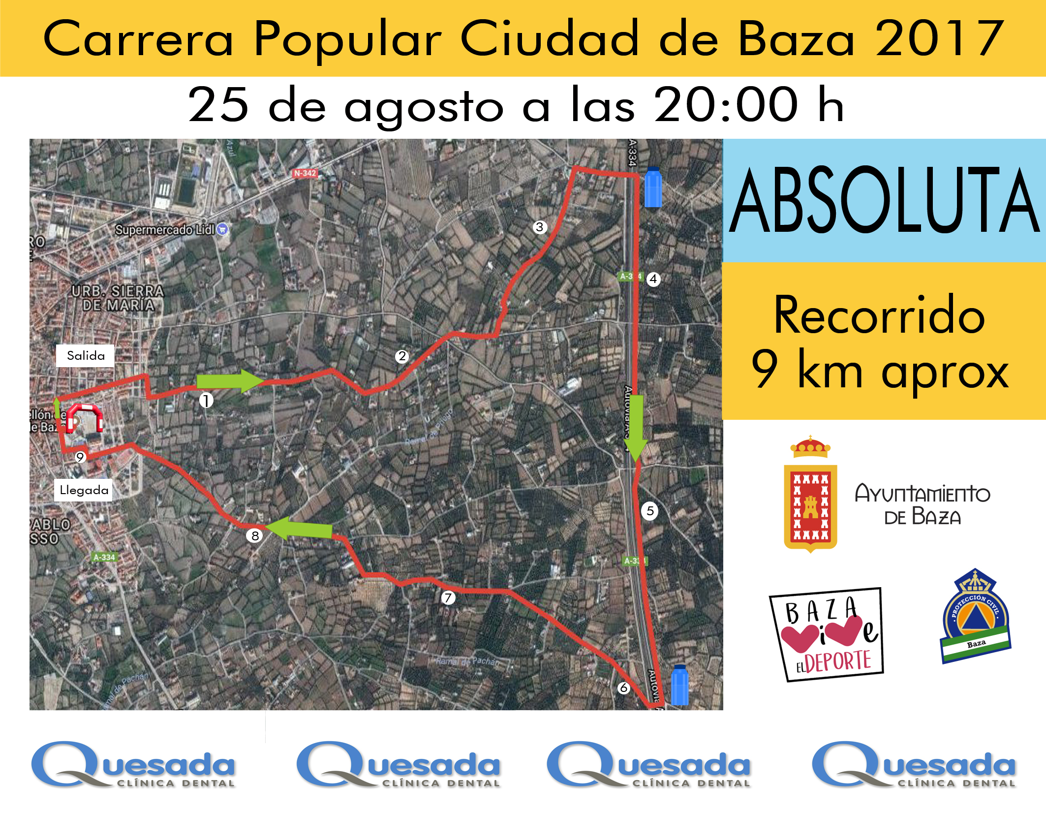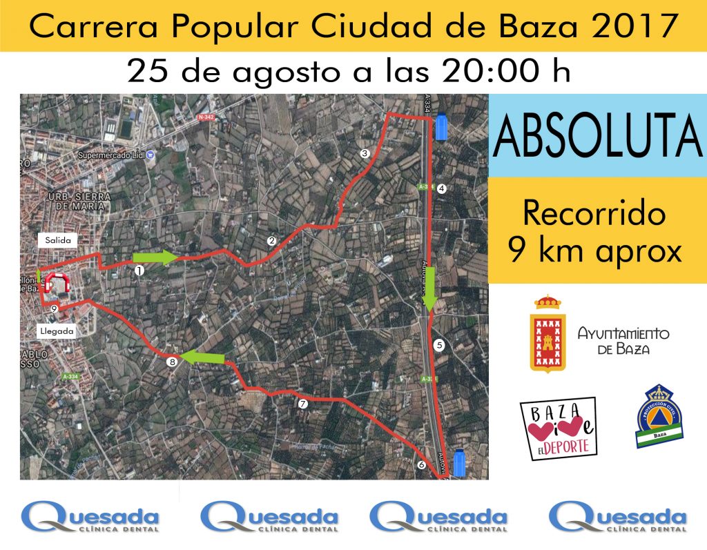 El Excmo. Ayuntamiento de Baza, organiza el viernes, 25 agosto a las 20.00 horas, la Carrera Popular Ciudad de Baza, con salida y llegada desde el Pabellón Municipal de Deportes.
