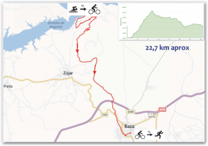 Es una prueba del Spartan Triatlón provincial, que con el visto bueno de la Federación Andaluza de Triatlón, consistirá en una prueba de natación de 1.000 metros en el pantano, en 26 kilómetros en bicicleta que en su mayoría discurrirán por el Cerro Jabalcón y finalizará con una carrera de 6 kilómetros por el casco antiguo, con salida desde el Parque de la Constitución, y pasando por espacios tan emblemáticos como la Plaza Mayor o el Parque de la Alameda y los Caños Dorados.
