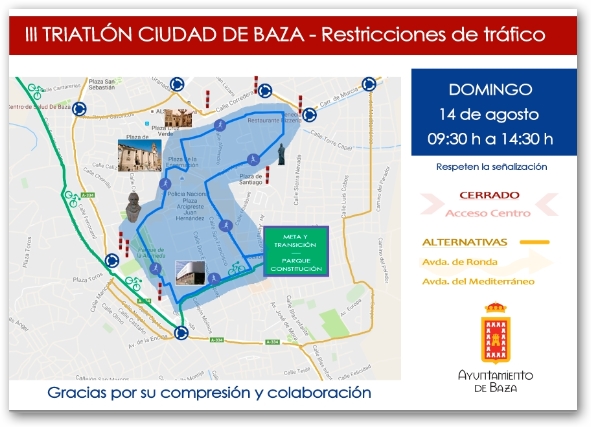Para garantizar la seguridad de la prueba y su desarrollo promocionando el deporte y el dinamismo de esta ciudad, se producirán cortes de tráfico en el Centro Urbano bastetano.