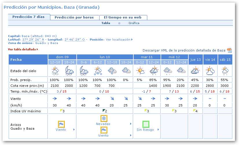 La Agencia Estatal de Meteorología ha aumentando a Nivel de Alerta Naranja por nevadas en Baza, desde las 03:00 horas del lunes hasta las 15 horas, en una cota que descenderá de los 1200 metros a las 700 metros con una acumulación de unos 5 cm.