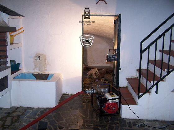 Los bomberos a su llegada, comprueban que se había producido un derrumbe parcial de una zona de cueva que se utiliza en la vivienda como almacén. Estas habitaciones estaban inundadas con una altura aproximada de 1m de agua. Según el propietario, llevaba varios meses con filtraciones en estas dependencias, situación que llevaba gestionando desde entonces.