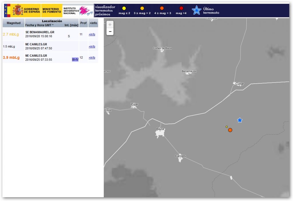 El Instituto Geográfico Nacional ha registro un movimiento sísmico de magnitud 2.7 que sitúan al sureste de Benamaurel.