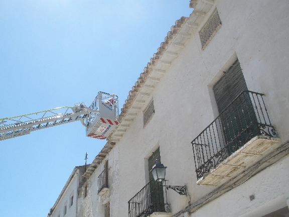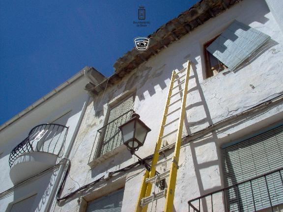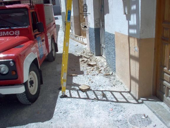 - 13’15 horas. DESPRENDIMIENTOS. Baza. Nuevamente son unos ciudadanos los que alertan del mal estado del tejado de una vivienda deshabitada en la C/ Cava Alta, 24. Dos bomberos con la Auto Escalera Automática retiran varias tejas del voladizo, que dada su inestabilidad suponían un riesgo para los ocupantes de la vía pública.