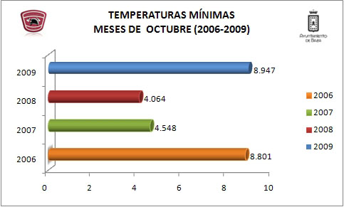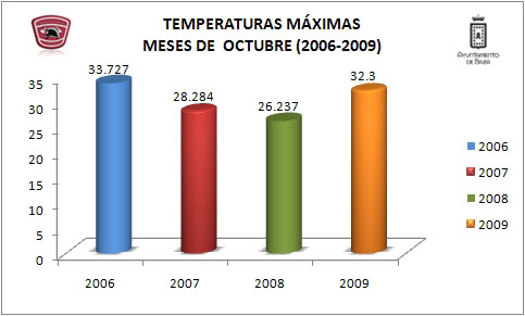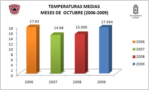 A la vista de los gráficos se puede concluir que este mes de Octubre de 2009 ha sido bastante cálido, pero a su vez, muy parecido al mes de Octubre de 2006. Cifra llamativa ha sido, sin embargo, la temperatura del día 1 de Noviembre donde se registró una temperatura máxima de 25.56ºC.