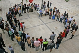 Más de un centenar de ciudadanos de Baza han mantenido un minuto de silencio este medio día en señal de solidaridad con la vecina ciudad de Lorca y de respeto con las víctimas del terremoto de la pasada tarde.