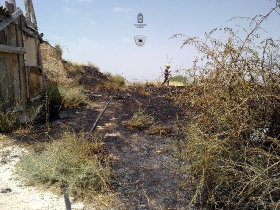 El primer incendio se declaró en el mediodía de ayer en nuestra ciudad, en la zona de Las Arrodeas, junto al Parque San Pedro Mártir. Este incendio se inició con dos frentes distintos y arrasó unos 3.000 m2 de rastrojos y matorral. Efectivos de Policía Local y Nacional se desplazaron al lugar del incendio.