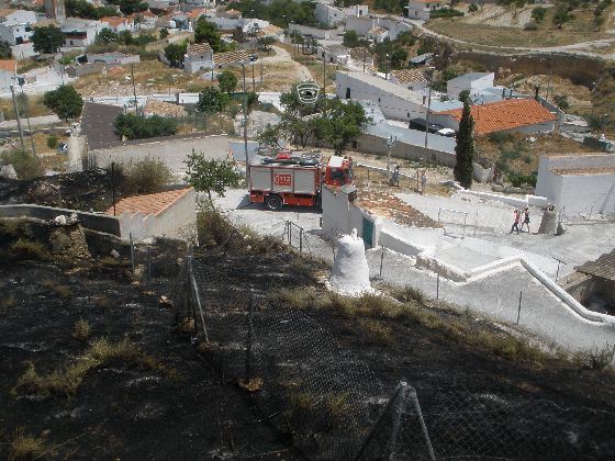 En el día de hoy, a las dos y media de la tarde otro incendio ha sucedido en Baza, en la zona superior de las Cuevas del Ángel a pocos metros de un conocido Santuario. Un acceso complicado y la cercanía a las viviendas han obligado a la intervención de 5 bomberos dotados de tres vehículos contra incendios, para así atacar con rapidez a este incendio que ha devastado unos 5.000 metros cuadrados de brozas, matorral y basuras, además de dañar a varias chimeneas pertenecientes a casas cueva.