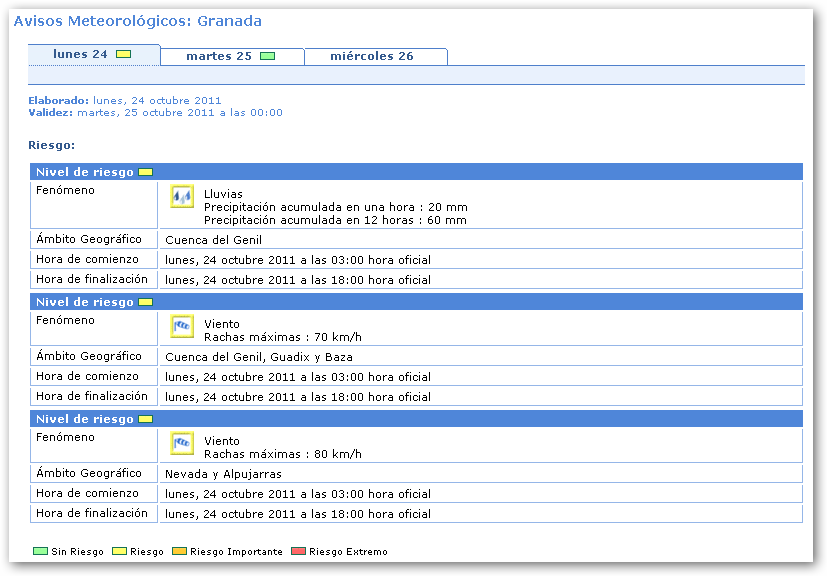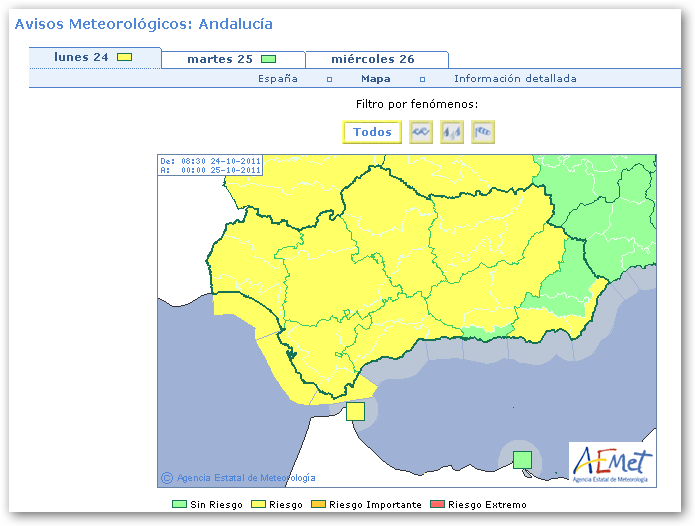 AEMET mantiene activado el nivel de alerta amarillo hasta las 18’00 horas de hoy lunes 24 de octubre.
