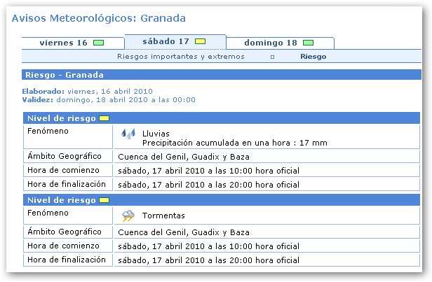 Desde las 10:00 horas del 17/04/10 hasta las 20:00 horas del 17/04/10