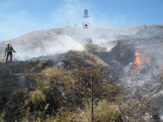En el día de hoy lunes, la semana comienza con un incendio en la misma zona que el incendio que quemó 5 hectáreas el pasado viernes, esta vez iniciándose desde la parte más baja de la ladera y por tanto, con viviendas más cercanas. Efectivos de Infoca con un camión autobomba y dos bomberos con una Bomba Forestal han controlado este incendio que ha quemado una extensión de unos 8.000 metros cuadrados.