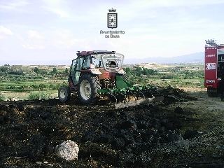 - 17’47 horas. INCENDIO AGRÍCOLA. Benamaurel. Guardia Civil alerta a este Servicio de la existencia de un incendio en Huerta Real, Benamaurel. A la llegada de los bomberos, el propietario de la finca, les informaba que el incendio afectaba a un total de 300 alpacas y 10.000 kg de leña. Bomberos iniciaron las labores de extinción, con la ayuda de un tractor, empleando dos horas para la extinción total del incendio que también afectó a un terreno de unos 3000 m2 y 14 olivos colindantes.