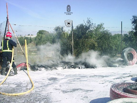 15’06 horas. Los bomberos se desplazan al interior del recinto de «Karting Baza» para la extinción de un incendio que estaba afectando a neumáticos y leña. Policía Nacional y Local están presentes en dicho incidente.