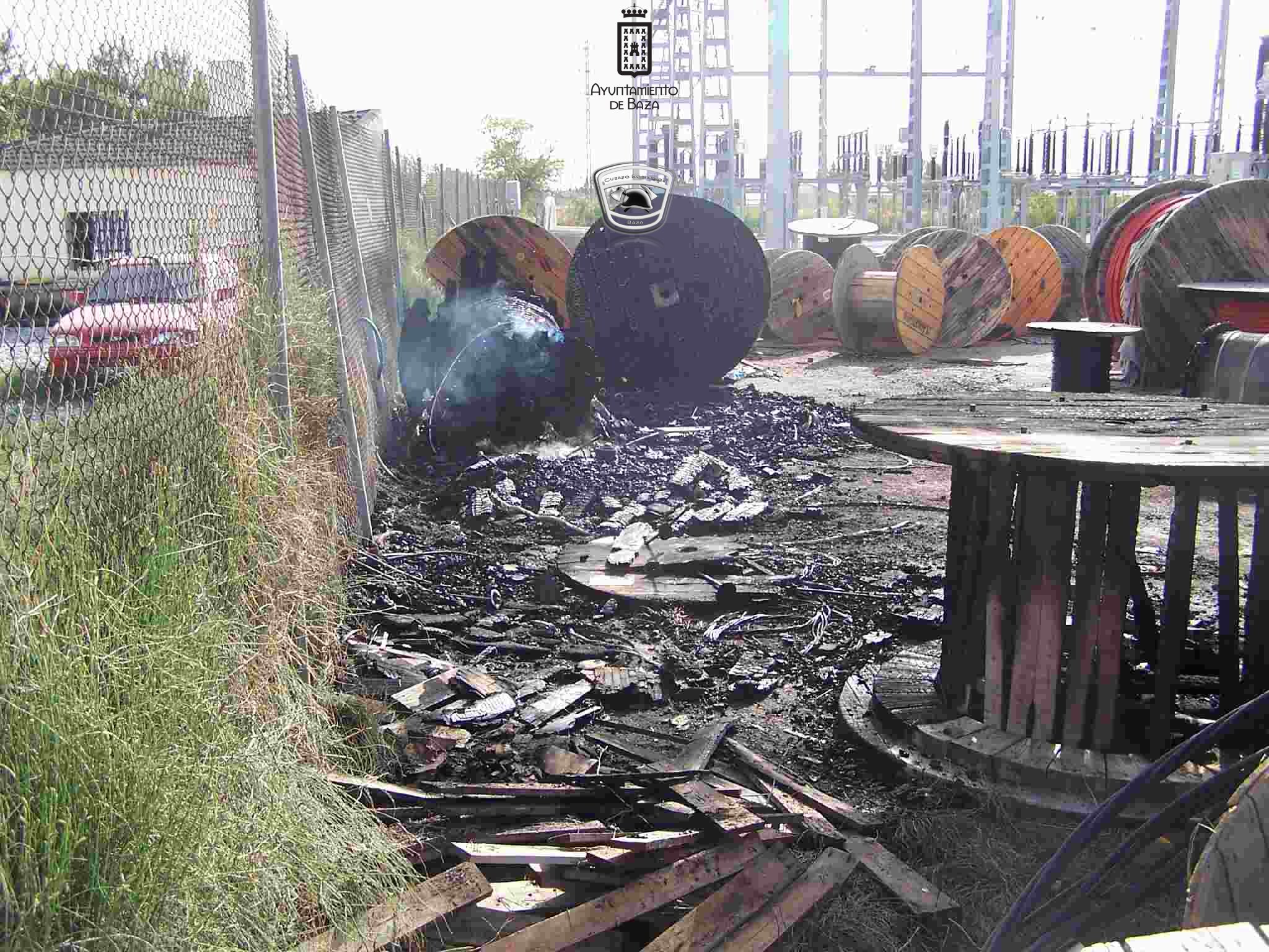 - 02’27 horas. INCENDIO SUBESTACIÓN ELÉCTRICA. BAZA. Varios alertantes utilizaron los teléfonos de emergencia para avisar de un incendio en la Subestación Eléctrica situada en la Carretera de Murcia de nuestra ciudad. Hasta el lugar se desplazan 5 bomberos, dotados del BRP, BUL y UMT y extinguen más de una decena de bobinas utilizadas para el tendido eléctrico, que se encontraban en el interior del recinto. En el lugar están presentes operativos de Policía Nacional y Local, así como empleados de la compañía eléctrica.