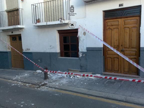 - 05’59 horas. DEMOLICIÓN DE CORNISA. Baza. Nuevamente es Policía Local quien informa, esta vez del desprendimiento del alero de una terraza de una vivienda de la C/ Agua, 24. Los bomberos actúan saneando y balizando la zona.