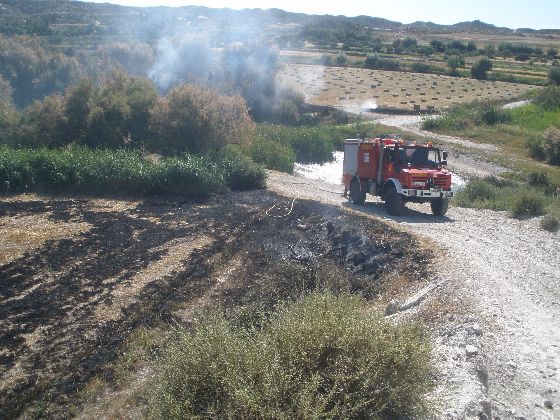 Ocurría a las cinco de la tarde del sábado cuando el Centro de Coordinación de Emergencias, 112 Andalucía, activaba a este Servicio para la extinción de un incendio en la Cañada del Salar en Benamaurel.