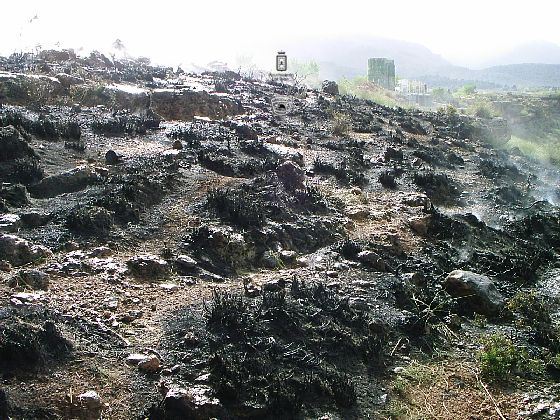 Policía Nacional de Baza y el Centro de Coordinación de Emergencias han puesto en conocimiento de este Servicio, la existencia de un incendio en el Barranco de Baúl, junto al puente de hierro. Según informaban los habitantes de este anejo, el fuego avivado por el viento, avanzaba rápidamente.