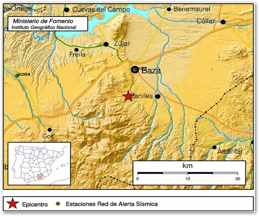 A las 13:31 horas un terremoto de 2.1º en la escala de Ritcher se ha registrado en la Sierra de Baza, cuyo hipocentro se ha localizado a tan sólo 5 km de la superficie.