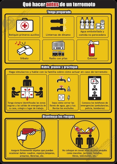 Desde este Servicio, aprovechamos para recordar qué hacer en caso de terremoto, antes, durante y después, gracias a las recomendaciones del Instituto Geográfico Nacional aprovechamos para recordar las recomendaciones básicas ANTES, DURANTE Y DESPUÉS.