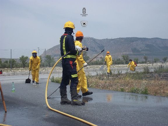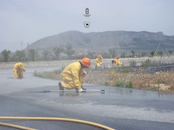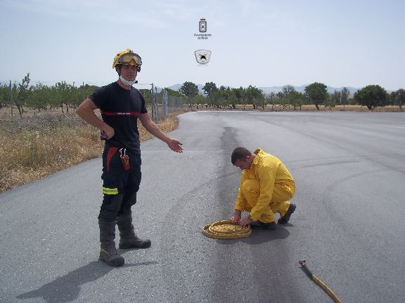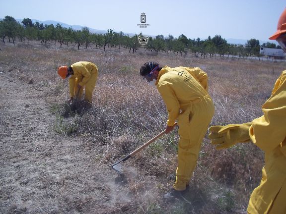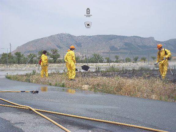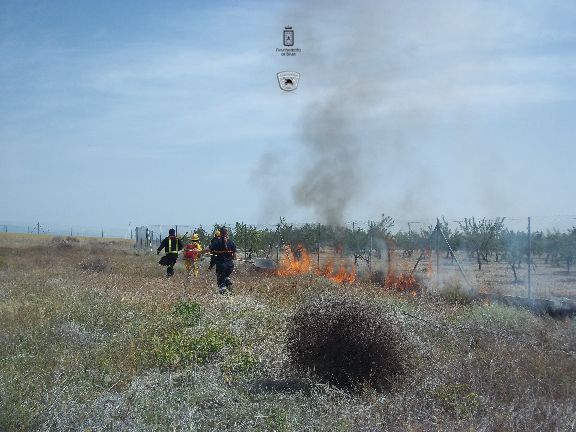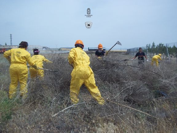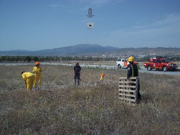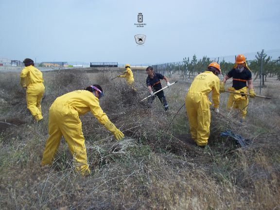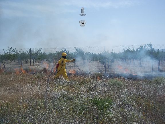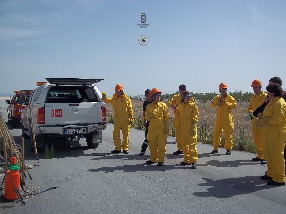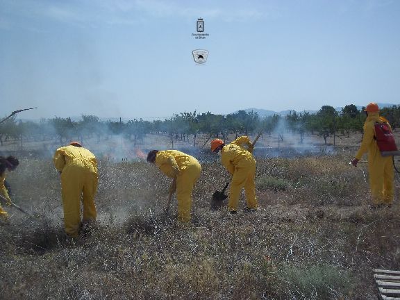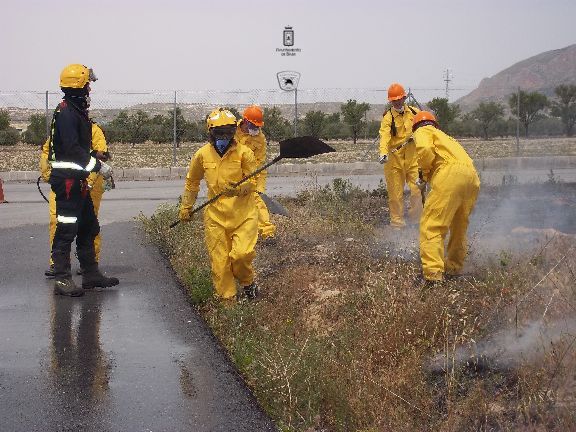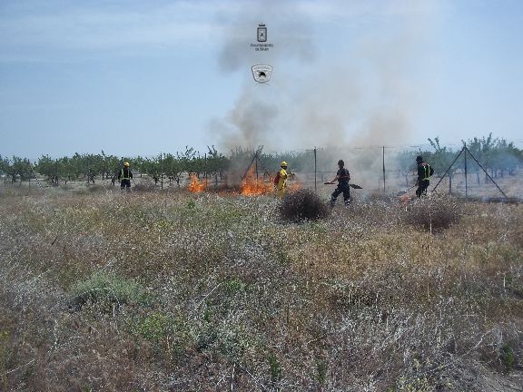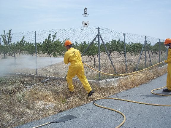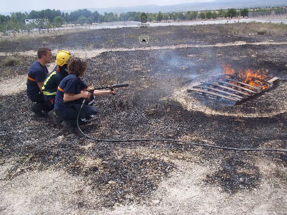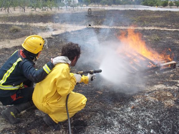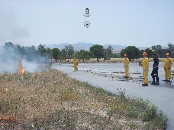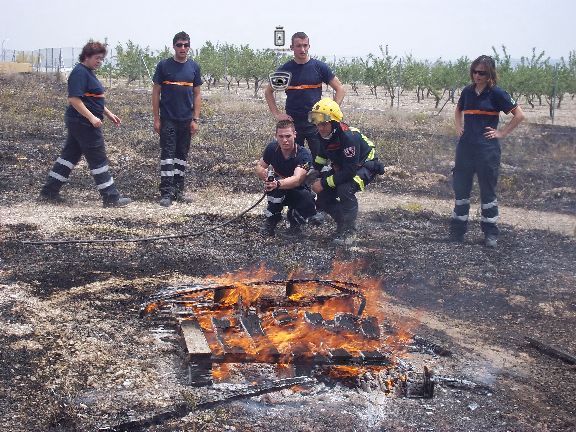 El sábado por la mañana, dotados con los equipos de protección e intervención, realizaron un simulacro de incendio forestal en un solar agrícola y con fuego real. La sesión consistió en la extinción de las llamas en una parcela, realizando una línea de defensa y controlando el perímetro, además, simularon la protección de viviendas en el interior del incendio, por lo que hubo que establecer una línea de protección de las mismas.