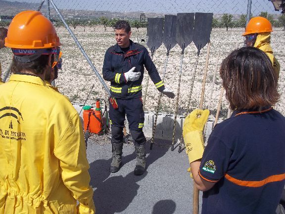 Los bomberos bastetanos han sido los encargados de transmitir su conocimiento y experiencia a los voluntarios a través de una programación teórica y práctica. En la sesión teórica abordaron aspectos básicos sobre los incendios en el entorno forestal, el procedimiento para su extinción, el material del que se dispone para sofocar las llamas y para protegerse de ellas, las funciones de los Grupos de Pronto Auxilio (colectivo del que forman parte) y la legislación vigente.