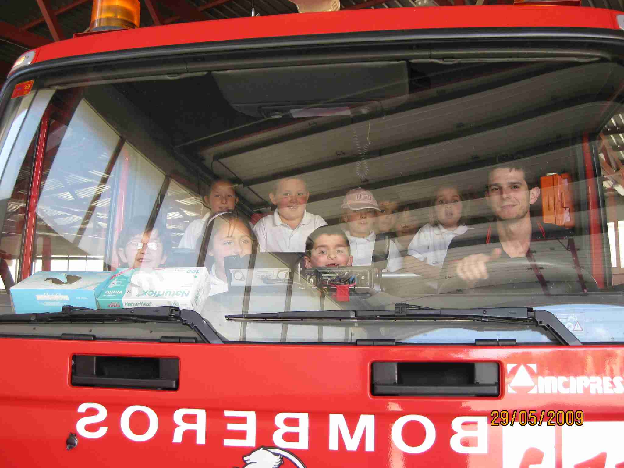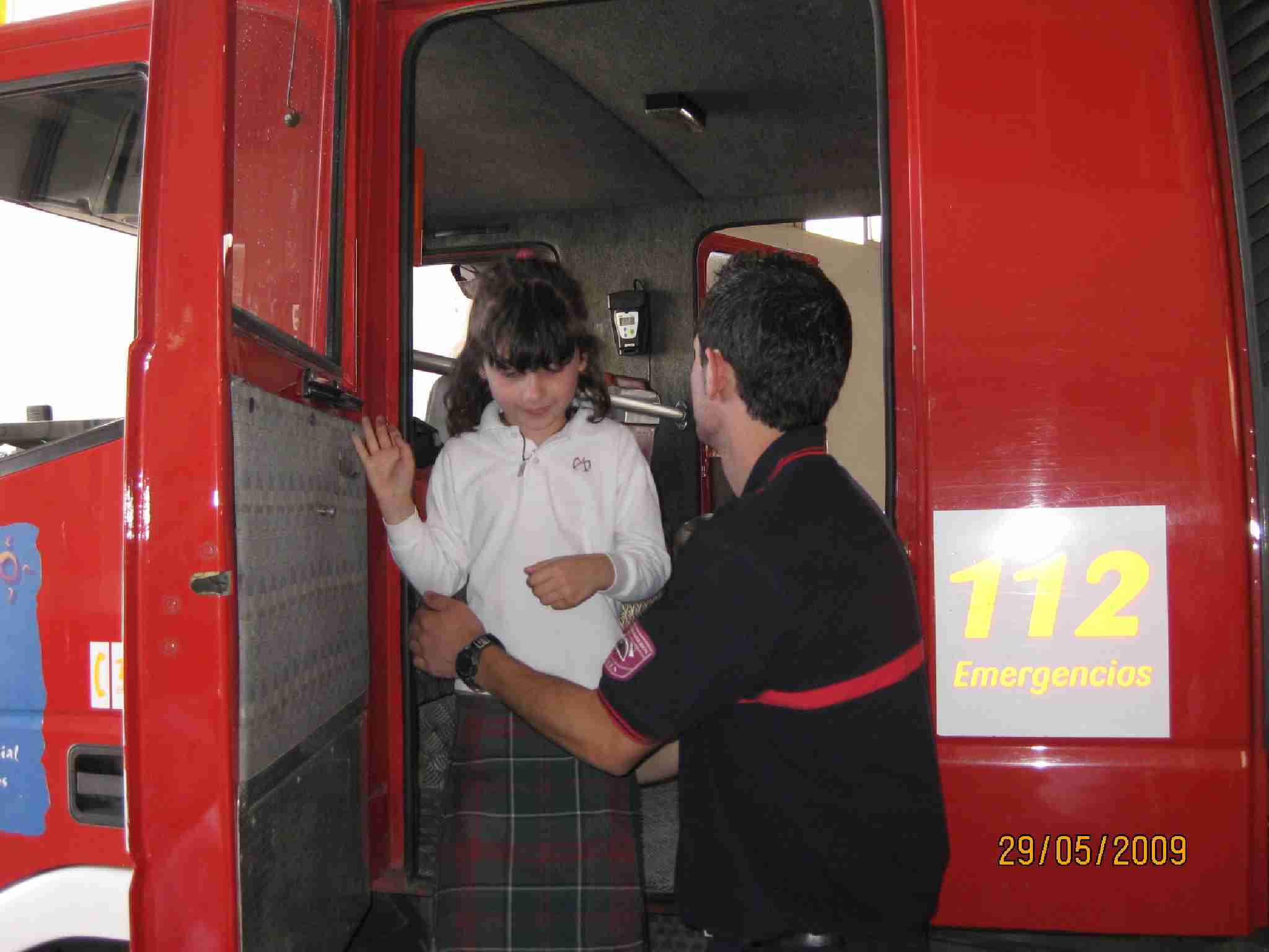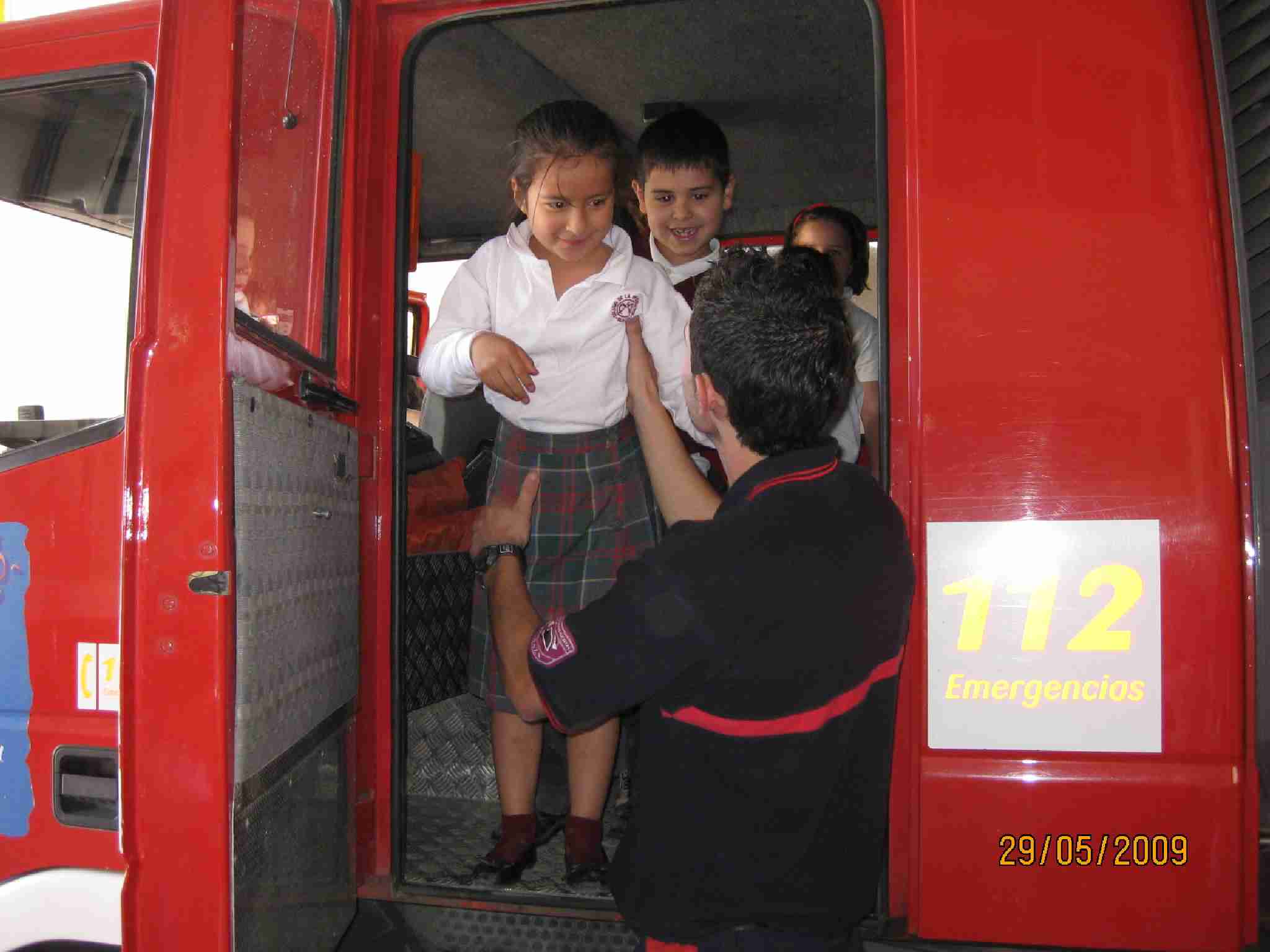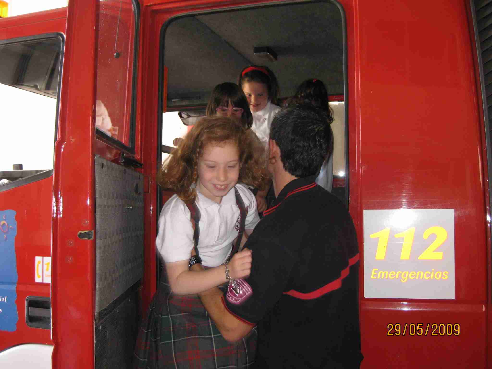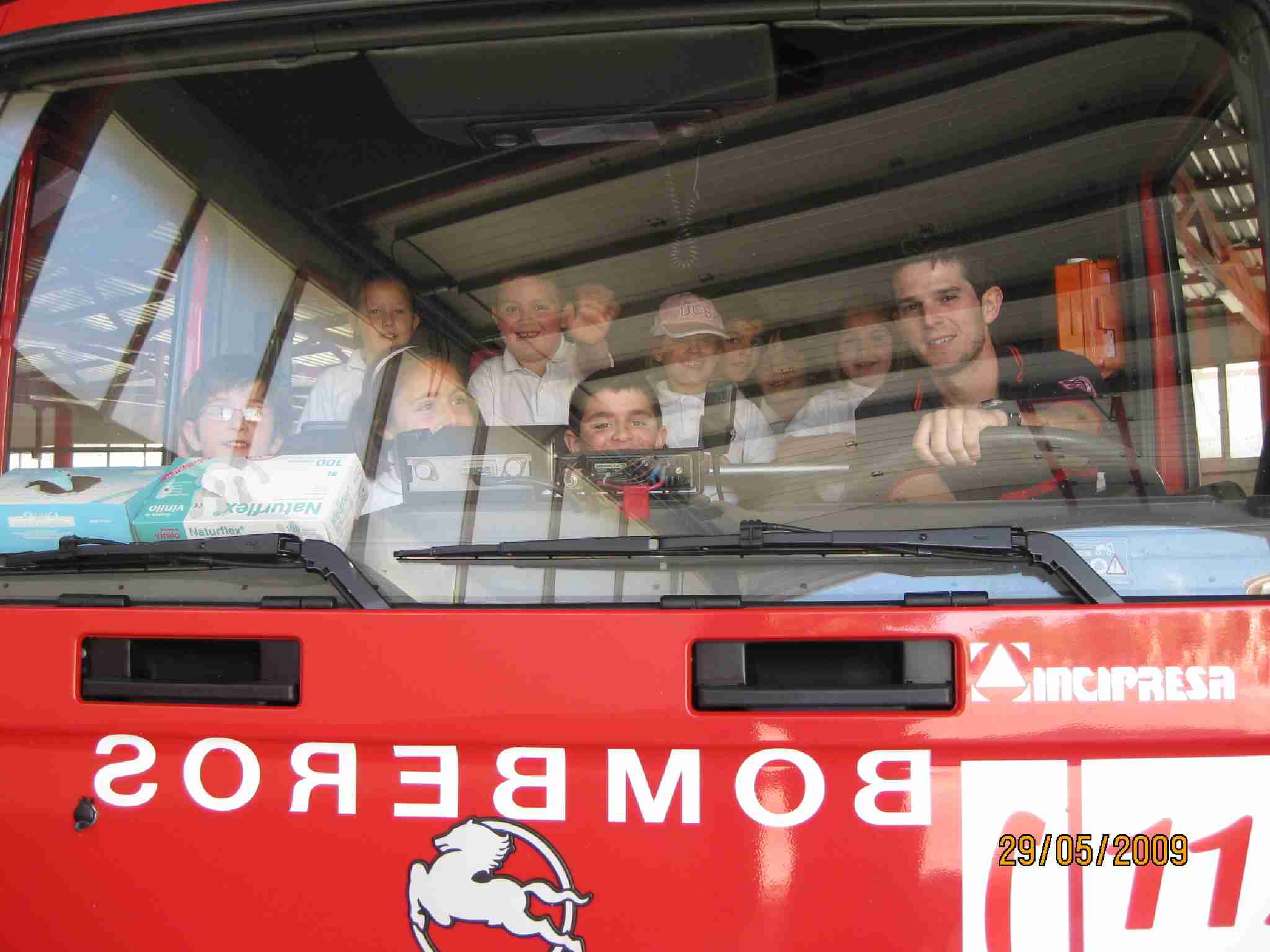 Tras estas lecciones, examinaron una a una las dependencias del Edificio, pasando por el «vestuario» de los bomberos, su gimnasio, la barra deslizante, etc… y como no, los inmensos vehículos, en concreto han disfrutado en la Bomba Urbana Ligera, BUL, ¿verdad? en el que se han montado tod@s para despedirse de un día inolvidable.