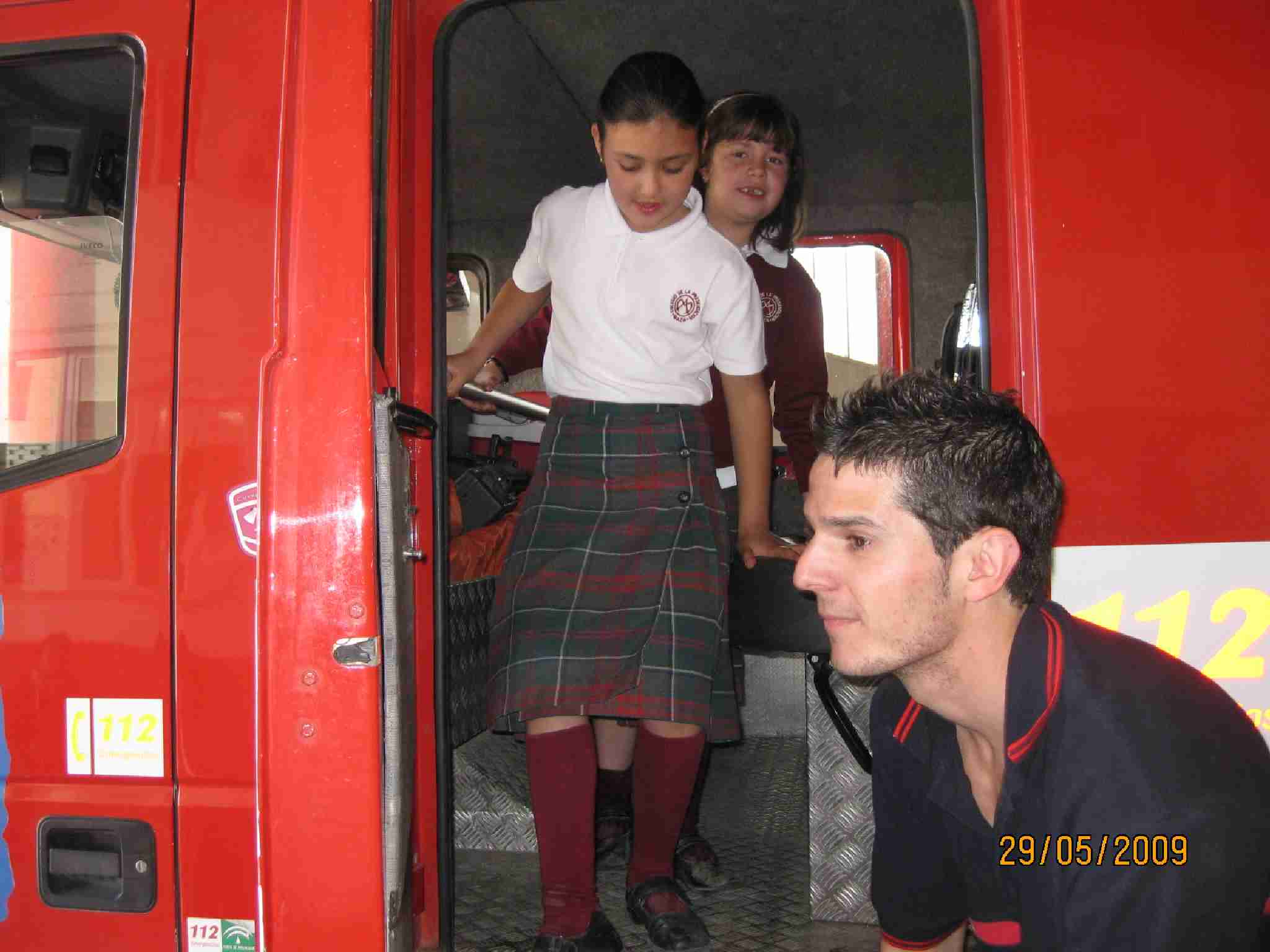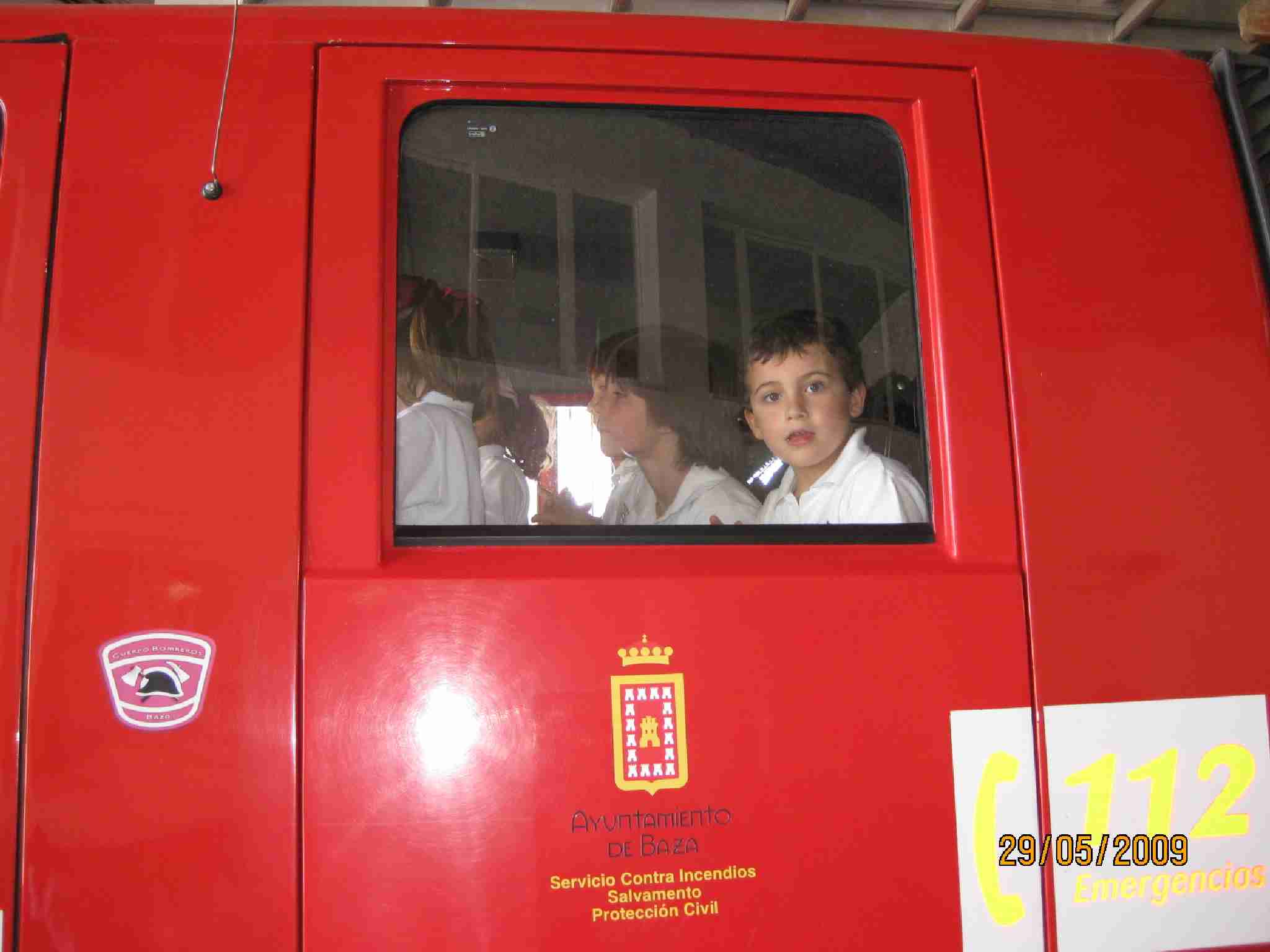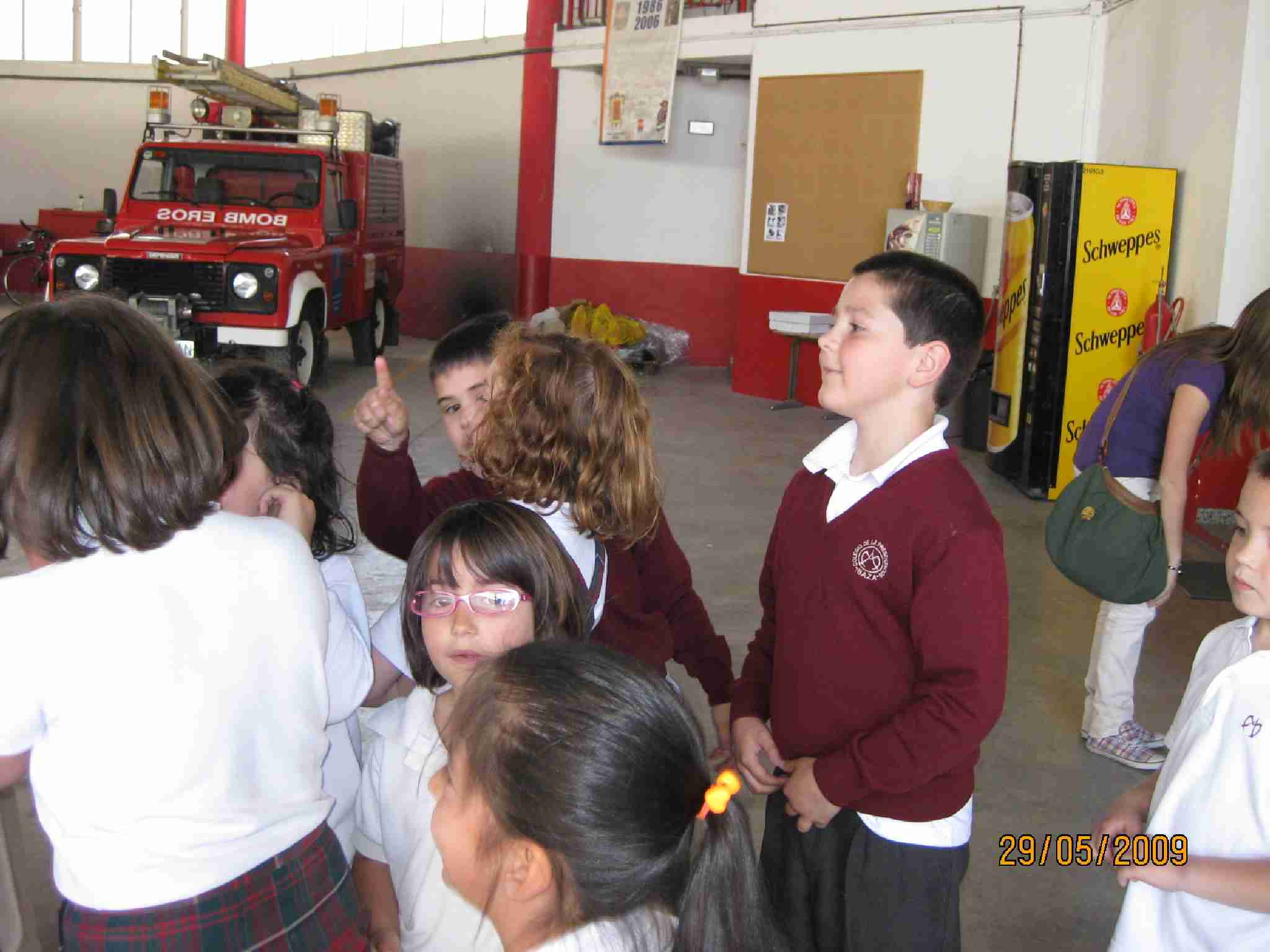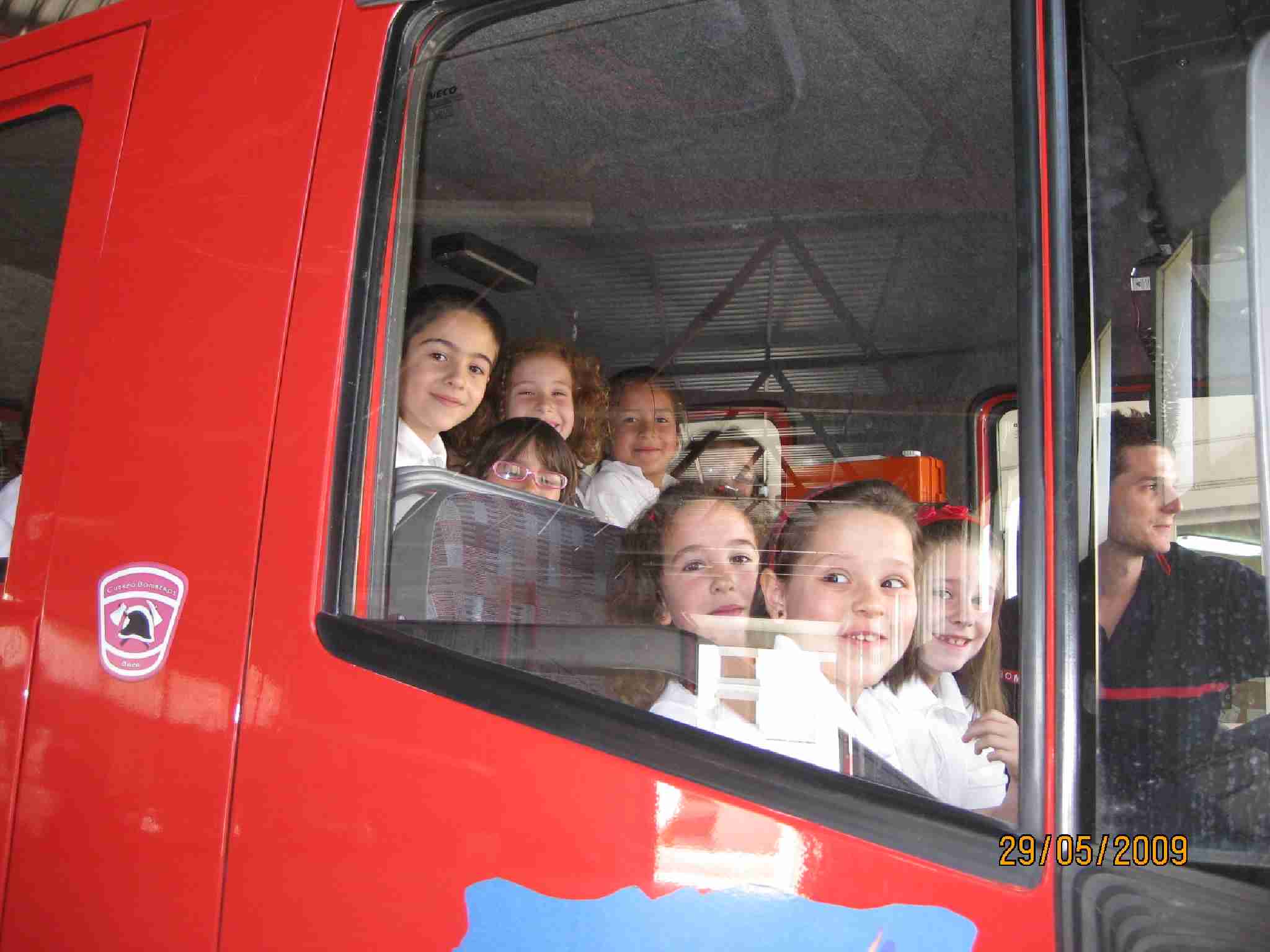 Tras estas lecciones, examinaron una a una las dependencias del Edificio, pasando por el «vestuario» de los bomberos, su gimnasio, la barra deslizante, etc… y como no, los inmensos vehículos, en concreto han disfrutado en la Bomba Urbana Ligera, BUL, ¿verdad? en el que se han montado tod@s para despedirse de un día inolvidable.