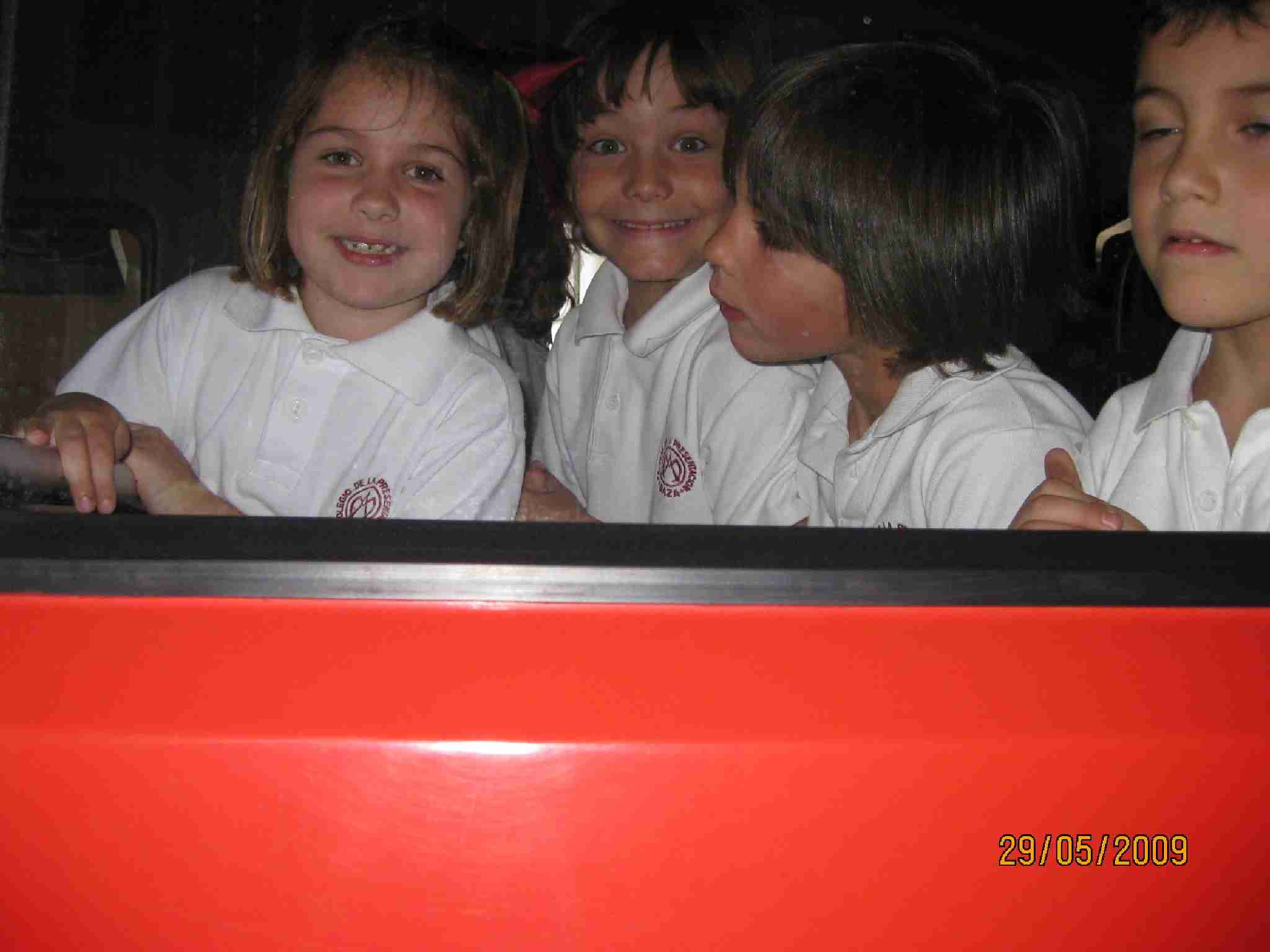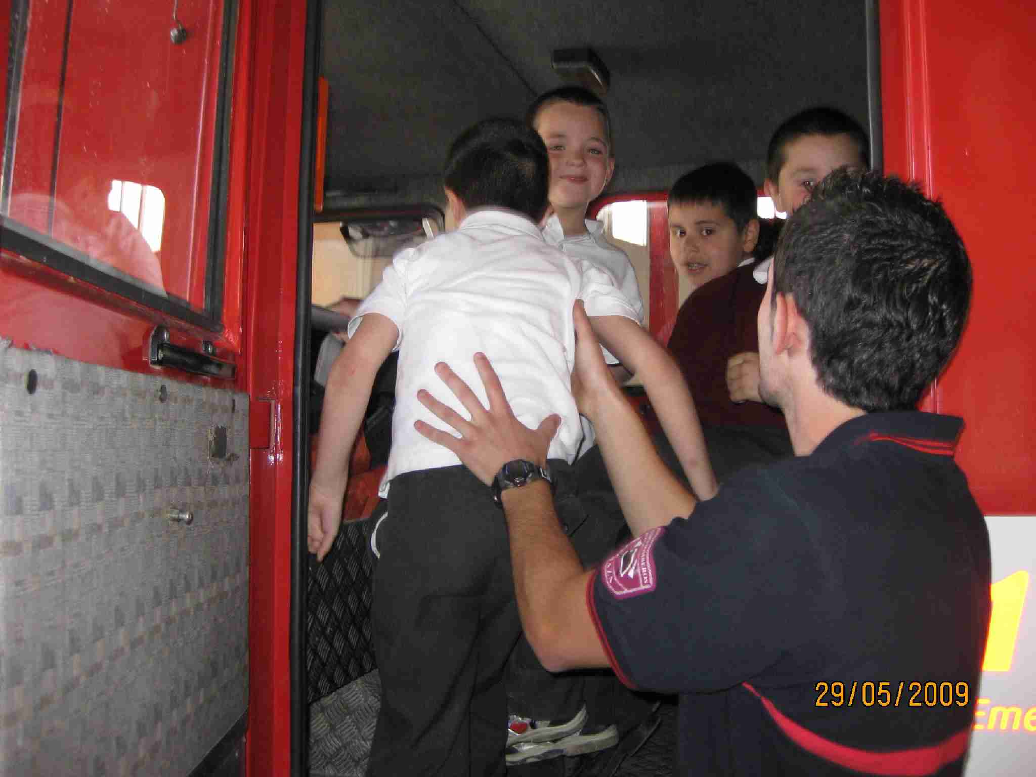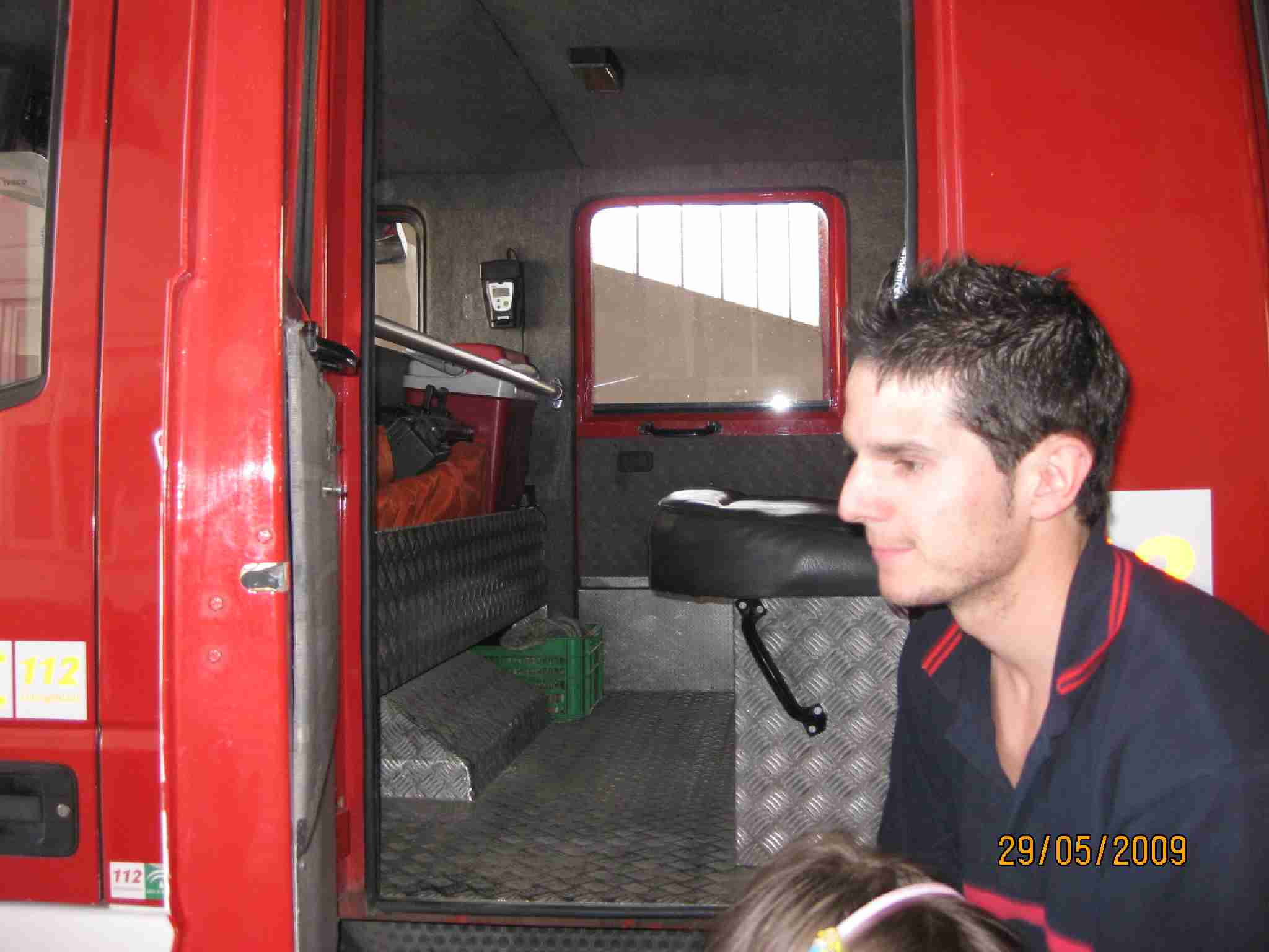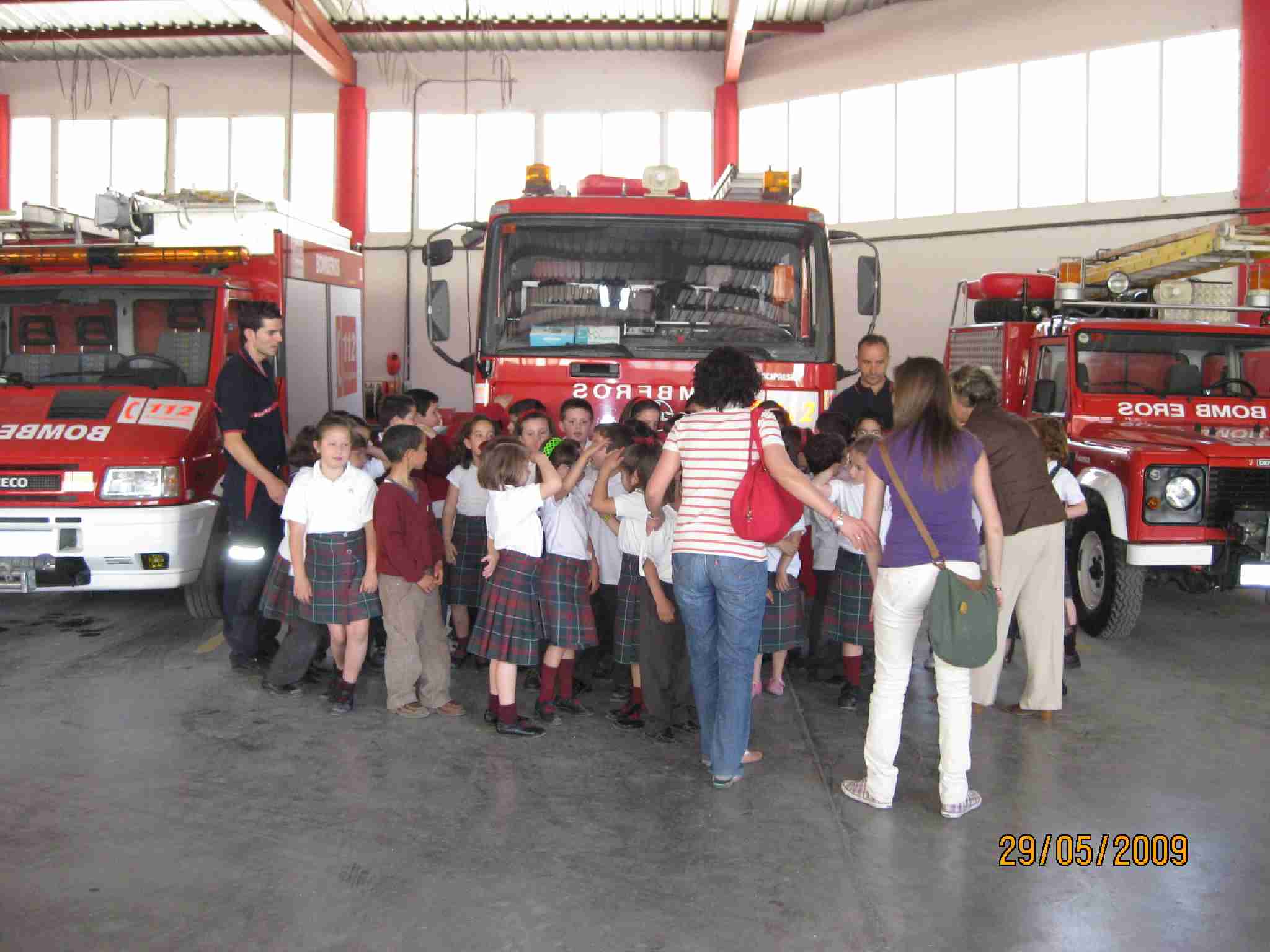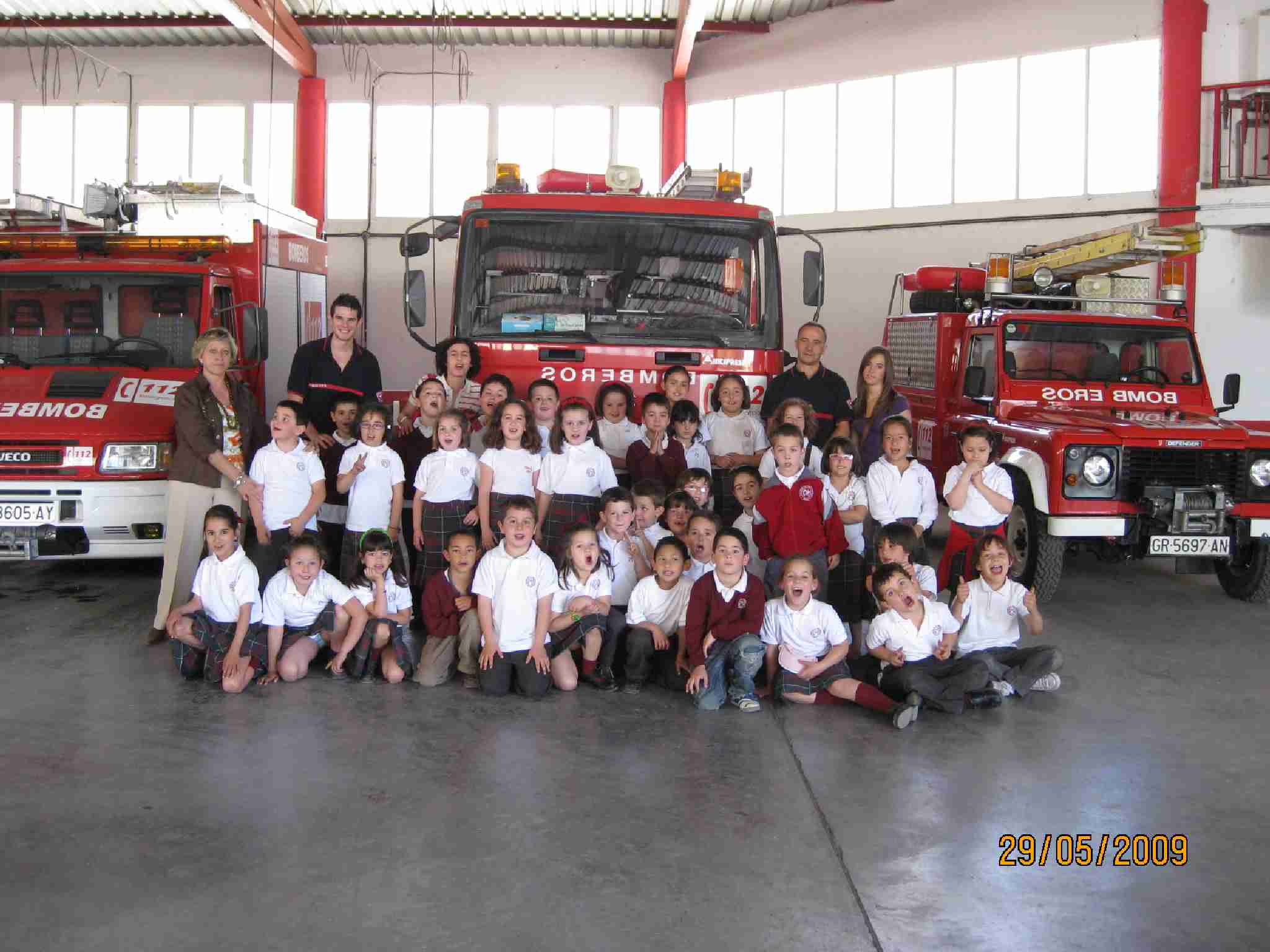 Tras estas lecciones, examinaron una a una las dependencias del Edificio, pasando por el «vestuario» de los bomberos, su gimnasio, la barra deslizante, etc… y como no, los inmensos vehículos, en concreto han disfrutado en la Bomba Urbana Ligera, BUL, ¿verdad? en el que se han montado tod@s para despedirse de un día inolvidable.