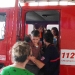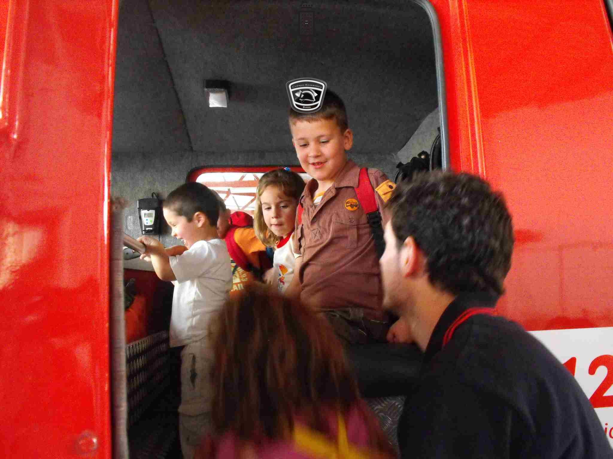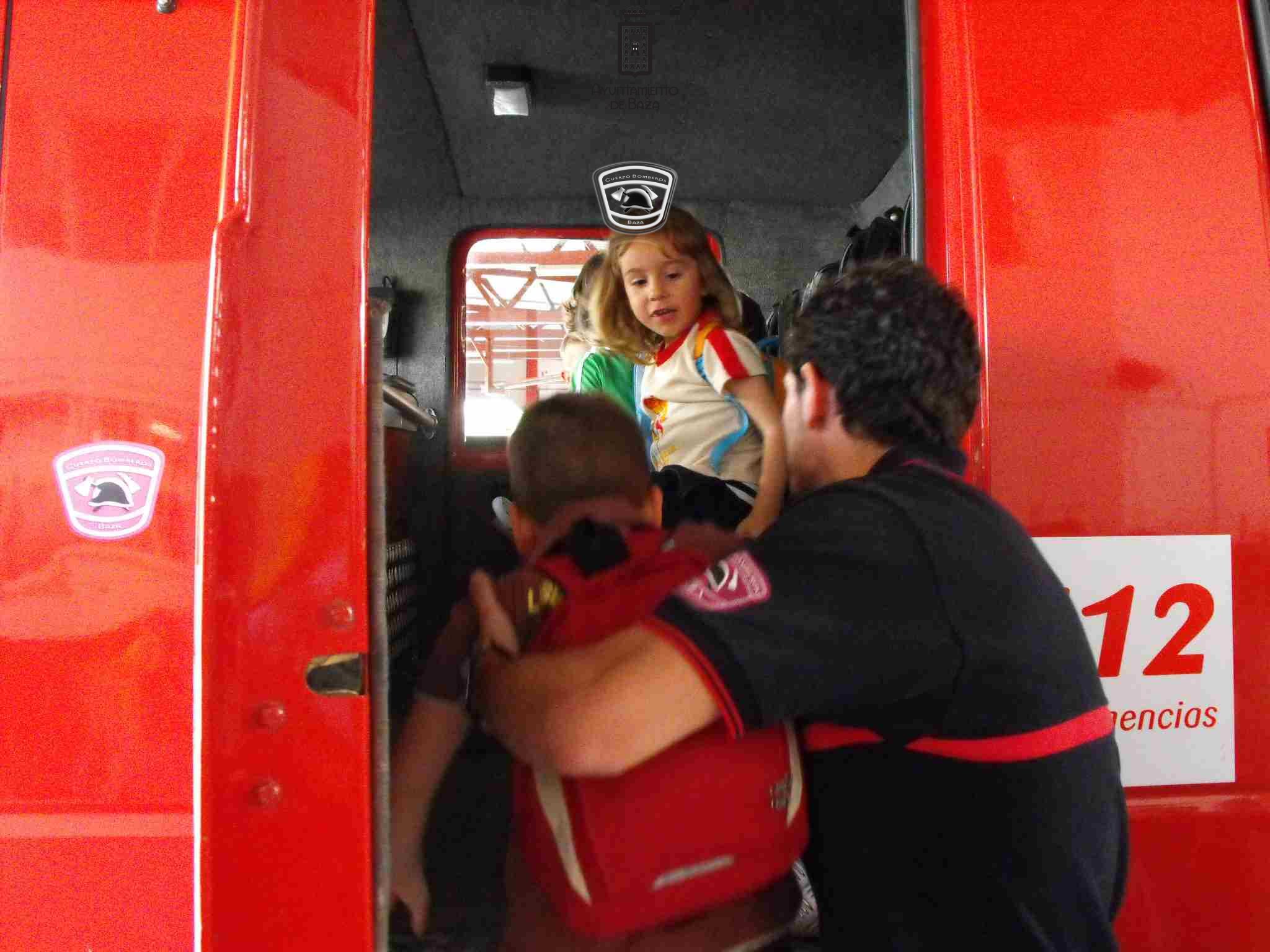 No podía faltar la simulación de una salida de emergencia, así que montados en el BUL (Bomba Urbana Ligera) han experimentado las sensaciones de los bomberos.