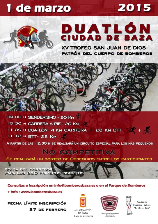 Muy buenas, la Duatlón se celebrará el próximo domingo 6 de marzo. Esperamos hoy poder publicar toda la información. Gracias ;)